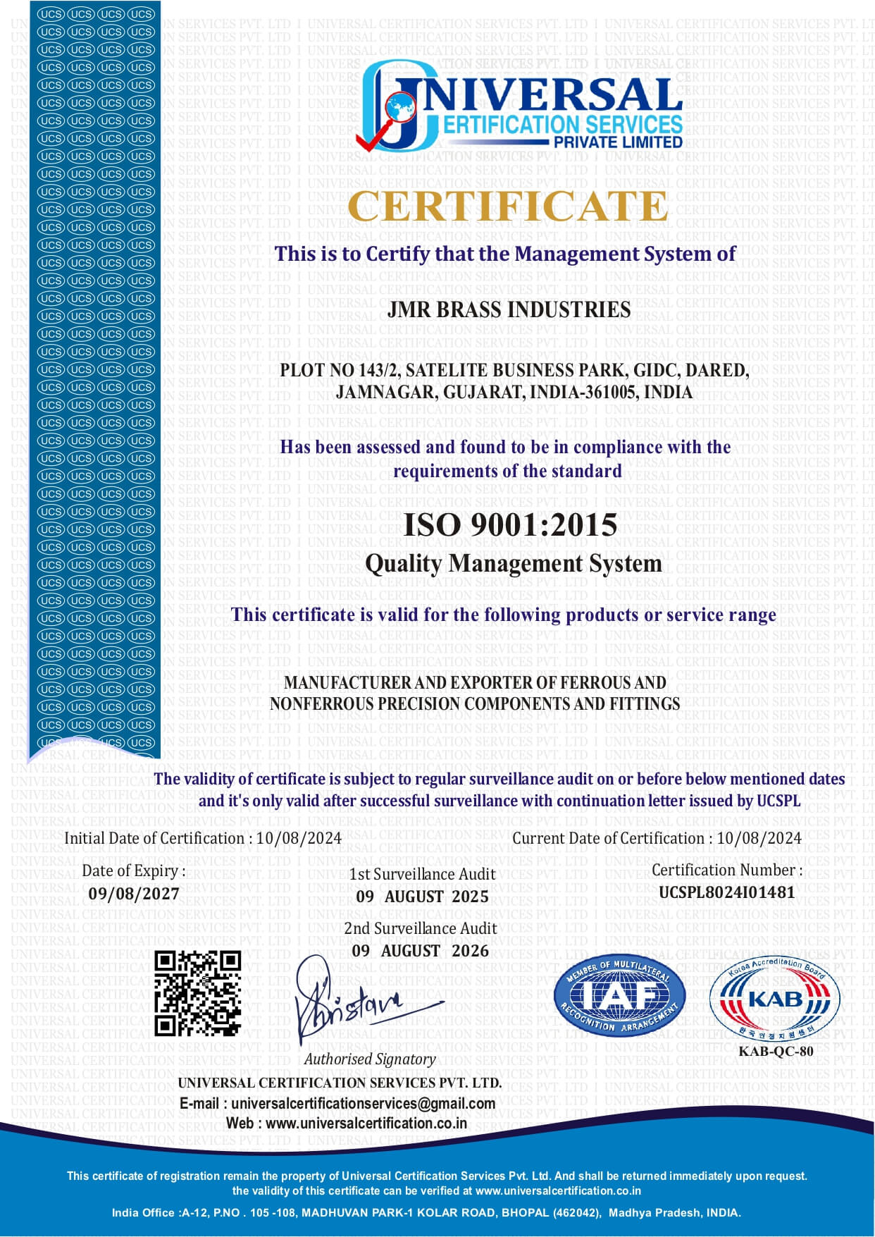 JMR Brass Industries is a privately owned firm with ISO 9001:2015 certification since 1918. We are located in the western part of India in the Jamnagar city of Gujarat. We had started our journey from Job work of MS parts. And with the span of time, we gained the knowledge & expertise in the field of Brass Components. Then, we jumped to trading and then manufacturing Brass Components. Today we are manufacturing & selling thousands of Brass, Coper, Steel and Alluminium Components. We are exporting to Japan, Australia, UK, Germany, Paris, Canada, UAE, Newzeland, Israel, Palestine, Brazil, Qatar, Doha, South Africa, Malaysia and many countries world wide.